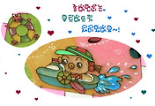 배경은 세가지 색으로 .. 연두...노랑... 분홍..